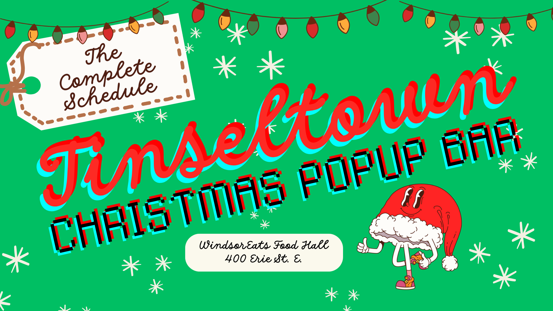 The holidays are officially taking over WindsorEats Food Hall! From November 14 to December 31, Tinseltown Windsor is popping off with cocktails, cookies, cocoa, and more holiday fun than you can shake a candy cane at. Here’s the complete schedule to all the festive goodness coming your way.